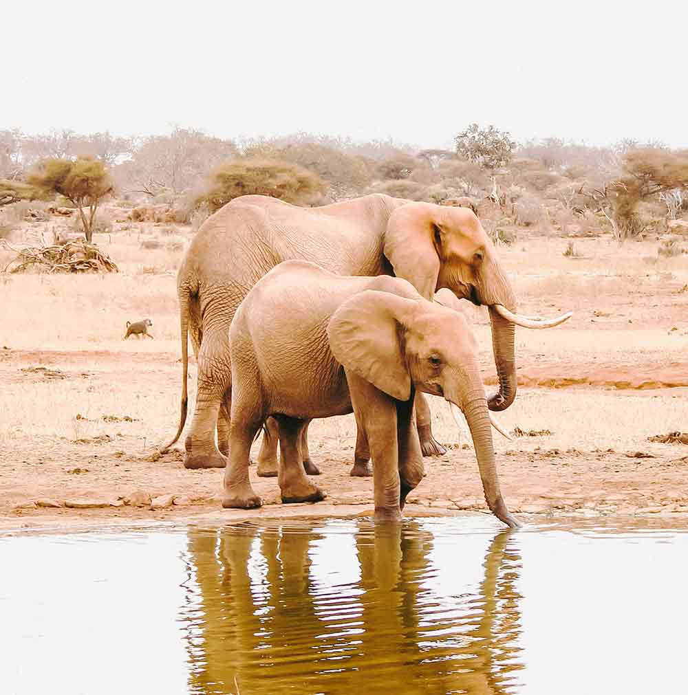Lungo il tragitto potrebbero iniziare i primi incontri: giraffe eleganti, zebre in movimento, elefanti coperti di terra rossa la savana si svela poco alla volta.